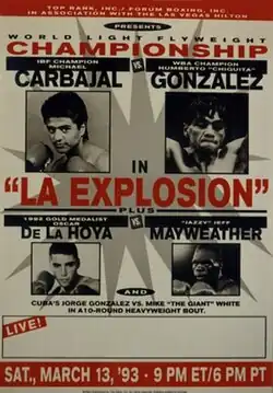 Michael Carbajal vs. Humberto González, billed as La Explosion, was a professional boxing match contested on March 13, 1993 at the Las Vegas Hilton for the IBF and WBC junior flyweight world championships.[1] The fight made boxing history in many ways. While this pair of world champions fought three times, their first fight is the one that writers and fans usually remember with fondness.