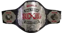 The wXw World Tag Team Championship[1] is a professional wrestling world tag team championship contested for in the German professional wrestling promotion, Westside Xtreme Wrestling (wXw). The inaugural champions was Swi$$ Money Holding (Claudio Castagnoli and Ares). They claim to have bought the titles on June 1, 2001.[2] The titles have been defended internationally in Japan, the United States, the Netherlands and the United Kingdom and on cards promoted by Combat Zone Wrestling, Pro Wrestling Noah, British Championship Wrestling, Big Japan Wrestling and others.[3][4][5]