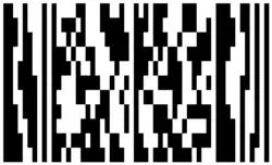 MicroPDF417 Row Address Patterns (RAP)[3]: 5.2.5 are stacked into columns. Each RAP is used as indicator of row number, but RAP is not the same as row number. Every MicroPDF417 RAP consists from 10 modules, which are split to 3 black bars and 3 white spaces. Bars and spaces size can vary from 1 to 5. Each RAP row starts from black bar and ends with white space. Right RAP has additional completing black bar.