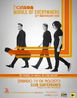 The Middle of Everywhere: 25th Anniversary Tour (also known as the Middle of Everywhere Tour) is the fourteenth concert tour by American band Hanson. The tour is a celebration to mark when the band formed in 1992. Beginning June 2017, the tour visited Europe, Australasia and the Americas.