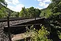 The Middlefield–Becket Stone Arch Railroad Bridge District is a historic district extending through parts of the towns of Chester, Middlefield, and Becket, Massachusetts.[2] The district encompasses a 3.7-mile (6.0 km) stretch of railroad right of way in which there are ten bridge crossings, including nine over the west branch of the Westfield River. The bridges were built in four time periods: 1840, 1866, 1912, and 1928. Nine of the ten bridges are stone or concrete masonry work, and one is a truss girder bridge. All are, with only minor exceptions, in excellent and original condition. The bridges were built to carry the Western Railroad through on its run from the Connecticut River to the Hudson River. This section of railroad was the most expensive the company had to build, costing over $1 million in 1840.[3]