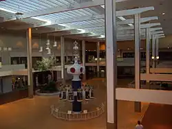Midtown Plaza was well known for its Clock of Nations, designed by Gere Kavanaugh.[4] The clock was moved to the Greater Rochester International Airport terminal during the demolition, but was dismantled, removed from the airport, and placed in storage during a 2016 renovation, where it remained until 2024.[16] In that year, the Clock was moved to Tower 280—the former Midtown Tower, not far from the Clock's original installed location, restored, and is now on display in the lobby.[17]