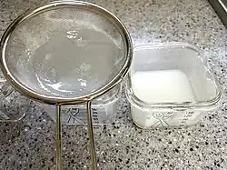 Mieum (Korean: 미음; Hanja: 米飮) is a thin, strained gruel made from white rice, white glutinous rice, foxtail millet, or glutinous foxtail millet.[1][2] It is often used in liquid diets for patients and for recently weaned children.[2] A thinner mieum, made from rice water or mixed with powdered milk, is sometimes used as a breast milk substitute for younger babies.[2][3]