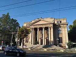 The Mihai Eminescu National Theatre (Romanian: Teatrul Național „Mihai Eminescu”) is a historical and architectural monument built in neoclassical style located in Central Chișinău, Republic of Moldova. Originally constructed to house various cultural activities in 1931, the purpose of the building and its name changed several times over the years. In 1988 the theater was named in honor of the Romanian poet from Moldavia Mihai Eminescu. The theater hosts plays and concerts.