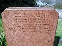 Mike Taylor drowned in the River Thames near Leigh-on-Sea, Essex, in January 1969, following years of heavy drug use (principally hashish and LSD). He had been homeless for three years, and his death was almost entirely unremarked.[3]