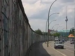 In 1997, Gorbachev told CNN that he did not plan to participate in advertisements again.[11] In 2000, however, Gorbachev was featured in an advertisement made in Vienna by Demner, Merlicek & Bergmann for the ÖBB, the Austrian federal railways. The slogan was "Perestroika in the ÖBB"[21][22] and was filmed at the Wien Floridsdorf railway station. The ad was broadcast on ORF for the first time on May 10, 2000.[23] In 2007, Gorbachev was featured in a photograph advertisement taken by Annie Leibovitz for Louis Vuitton in a car next to remaining parts of the Berlin Wall.[18][24] Unlike the Pizza Hut commercial, this advertisement was shown in Russia.[25]
