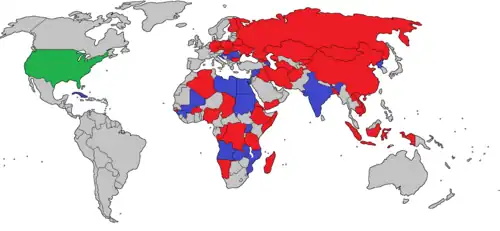 Operators of the MiG-21 in 2017 (former operators in red, current operators in blue, captured aircraft only in green)