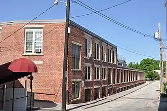 The mill was founded about 1813, producing fabric during the War of 1812. It closed in 1833, and was reopened under new ownership in 1838. At that time, it was enlarged and possibly rebuilt entirely. Its largest period of growth came after its acquisition in 1860 by Morse, Kaley & Company, who built its largest elements. The complex was sold to the American Thread Company in 1901, and sold in 1916. During World War I it produced fabric for lining military uniforms. It is one of the city's few surviving 19th-century industrial complexes.[2]