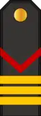 | Admiral | Vitse-admiral | Kontr-admiral | Birinci dərəcəli kapitan | Ikinci dərəcəli kapitan | Üçüncü dərəcəli kapitan | Kapitan-leytenant | Baş leytenant | Leytenant | Kiçik leytenant | |||||||||||||||