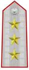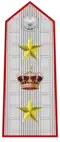| Generale d'Esercito | Generale in comando d'Armata | Tenente generale | Maggior generale | Colonnello comandante di reggimento | Colonnello | Tenente colonnello | Maggiore | Primo capitano | Capitano | Tenente | Sottotenente | ||||||||||