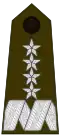 | Generał broni | Generał dywizji | Generał brygady | Pułkownik | Podpułkownik | Major | Kapitan | Porucznik | Podporucznik | ||||||||||||||||||||||||||