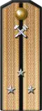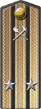 | Translation[14] | Admiral of the fleet | Admiral | Vice admiral | Rear admiral | Captain 1st rank | Captain 2nd rank | Captain 3rd rank | Captain lieutenant | Senior lieutenant | Lieutenant | Junior lieutenant | |||||||||||||
