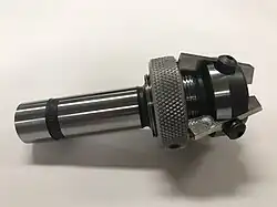 Another type of shell fastening is simply a large-diameter fine thread. The shell then screws onto the arbor just as old-style lathe chuck backplates screw onto the lathe's spindle nose. This method is commonly used on the 2" or 3" boring heads used on knee mills. As with the threaded-spindle-nose lathe chucks, this style of mounting requires that the cutter only make cuts in one rotary direction. Usually (i.e., with right-hand helix orientation) this means only M03, never M04, or in pre-CNC terminology, "only forward, never reverse". One could use a left-hand thread if one needed a mode of use involving the opposite directions (i.e., only M04, never M03).