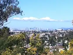 Originally a bedroom, almost resort community around the turn of the century, Millsmont (especially between Seminary Avenue and Edwards Avenue and Hillmont Drive and Mountain Boulevard) was built up as a place to get away from the faster pace of San Francisco. Being heavily wooded, it was an ideal place to buy land to which to escape on the weekends. Quarter-acre plots were available, including building plans and materials, for $500. Four standard plans were used to build quaint, one-bedroom dwellings. An original, unaltered house may be seen on the northeastern corner of Edgemoor Place and Sunnymere Avenue. Many Millsmont homes have panoramic views to Alameda and the San Francisco Peninsula to the west and the Oakland hills to the east.