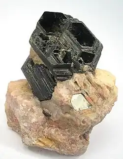 As of May 2025, 6,145 mineral species are approved by the IMA.[5] They are most commonly named after a person, followed by discovery location; names based on chemical composition or physical properties are the two other major groups of mineral name etymologies.[18][19] Most names end in "-ite"; the exceptions are usually names that were well-established before the organization of mineralogy as a discipline, for example galena and diamond.