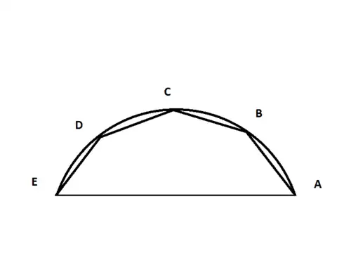 A hundred segment arc's chord can be considered as composite 10 segment-10 subsegments, thus