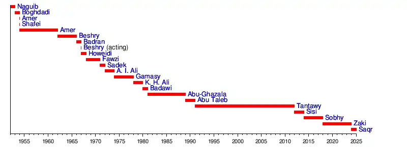 Armed Forces Commander-in-Chief7 April 195431 August 1954146 days Egyptian Army[3]