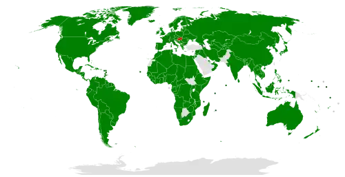 Armenia has established diplomatic relations with 178 countries (as of November 2020). Armenia became a member of the United Nations in 1992, and is currently a member of over 70 international organizations including the OSCE, CIS, CSTO, Council of Europe, EAEU, La Francophonie, and the BSEC.