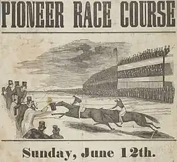 The lands around the nearly abandoned mission church became a focal point of raffish attractions[14] including bull and bear fighting, horse racing, baseball and dueling. A famous beer parlor resort known as The Willows was located along Mission Creek just south of 18th Street between Mission and San Carlos streets.[15] From 1865 to 1891, a large conservatory and zoo known as Woodward's Gardens covered two city blocks bounded by Mission, Valencia, 13th and 15th streets.[16] In the decades after the Gold Rush, the town of San Francisco quickly expanded, and the Mission lands were developed and subdivided into housing plots for working-class immigrants, largely German, Irish, and Italian,[14] and also for industrial uses.