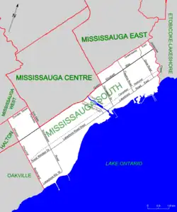 Mississauga—Lakeshore (formerly Mississauga South) is a federal electoral district in Peel Region, Ontario, Canada. It has been represented in the House of Commons of Canada since 1979.