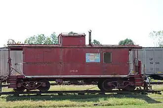 The Missouri Pacific Railway Caboose No. 928 is a historic caboose, located near Market and Vine Streets in Bald Knob, Arkansas, near the former Missouri Pacific Depot. It is a cupola caboose, measuring 34 feet 2 inches (10.41 m) in length and 10 feet 0.5 inches (3.061 m) in width, with a height of 14 feet 8.125 inches (4.47358 m). It was built in 1937 by the Magor Car Corporation, and was used by the Missouri Pacific Railroad until it was retired in 1986. It was one of the first generation of steel-framed cupola cabooses built, a form that later became commonplace. It was then given to the city of Searcy, where it was displayed until 2009. It was transferred to the White County Historical Society, and was then moved to Bald Knob.[2]