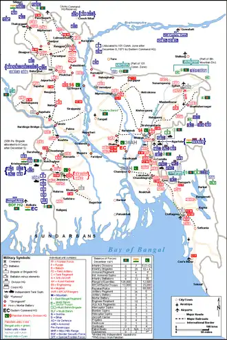 Location of Mitro Bahini and Pakistani units in December 1971. Some unit locations are not shown. Map not to exact scale