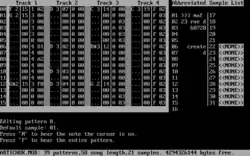The most popular version was the initial release, v2.00, in 1991 (v1.0 was a private release). Its screen was divided into three parts: Pattern editor, Pattern sequence table, and Sample list. Navigation around these parts was by keyboard.