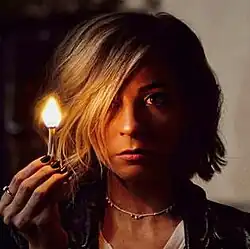 An accompanying double music video for "Monster" and "Monster (Reborn)" was uploaded to Hanna's YouTube channel on October 26, 2018, which was directed and edited by Ryan Parma.[4] The clip's first part begins with Hanna in the woods, lying on the ground in front of a house at night. Subsequently, she takes matches out of her jacket's pocket and strikes them as a little girl runs by. However, as the two make eye contact, she runs away and Hanna chases the girl as she enters the aforementioned house. The singer explores the house and peruses objects in the rooms, including pictures and a teddy bear. She finally finds the seemingly scared child in a bed and leans down to stroke her face.