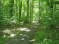 Mont-Saint-Bruno Provincial Park (French: Parc Provincial du Mont-Saint-Bruno, pronounced [paʁk pʁɔvɛ̃sjal dy mɔ̃ sɛ̃ bʁyno]) is a small national park of Quebec located near the municipality of Saint-Bruno-de-Montarville, 15 kilometres (9.3 mi) to the east of Montréal on the south shore of the Saint Lawrence River. The park, with an area of 8.84 square kilometres (3.41 sq mi), notably includes Mont Saint-Bruno, one of the Monteregian Hills which peaks at 218 metres (715 ft). The mountain is shared with the Ski Mont Saint-Bruno ski resort, a quarry and a small Canadian Forces (5th GSS) training camp. Despite its relatively small size, the mountain is known for its rich fauna and flora. Situated at the heart of the old signory of Montarville, its many lakes have permitted the construction and exploitation of many water mills, contributing to the region's economical success. A building from one of those mills, the "Vieux Moulin" (Old Mill), still stands to this day and is used as a rest area for skiers and hikers in different seasons.