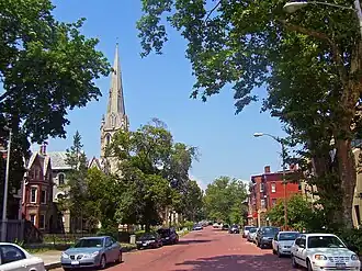 The Montgomery–Grand–Liberty Streets historic district was the first of two to be designated in the city of Newburgh, New York, United States. It runs along the three named north-south streets in the northeast quadrant of the city and includes 250 buildings in its 1,010 acres (4.1 km2). The later East End Historic District (Newburgh, New York) is nearby.