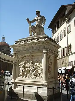 The Monument to Giovanni delle Bande Nere is an Italian Renaissance sculpture in marble, by Baccio Bandinelli and his workshop, now in Piazza San Lorenzo in Florence, Tuscany, Italy. The work took from 1540 to after 1560 to carve, and the base and statue, though always meant to be together, were only so placed in 1850.