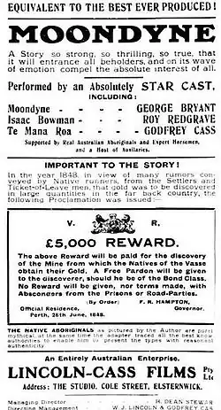 Moondyne is a 1913 Australian film from the Lincoln-Cass Film Company based on the novel Moondyne.[6][7][8] It was the second film from Lincoln Cass.[9][10]
