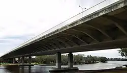 The Mooro–Beeloo Bridge, formerly the Redcliffe Bridge, is a traffic bridge which carries Tonkin Highway across the Swan River between the Perth suburbs of Ascot and Bayswater. It was originally named after the nearby suburb of Redcliffe; it was renamed in December 2023 following the completion of upgrades to the bridge and Tonkin Highway.[1][2] "Mooro" and "Beeloo" are the names for the Whadjuk clans that lived in territory north and south of the Swan River respectively.[1]