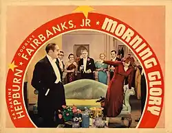 Morning Glory is a 1933 American Pre-Code drama film which tells the story of an eager would-be actress and her journey to stardom, and her gains and losses. The picture stars Katharine Hepburn, Douglas Fairbanks Jr., and Adolphe Menjou, was adapted by Howard J. Green from a then-unproduced stage play of the same name[2] by Zoë Akins, and was directed by Lowell Sherman. Hepburn won her first Academy Award for Best Actress. Morning Glory was remade in 1958 under the title Stage Struck.