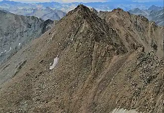Mount Wallace is a 13,377-foot-elevation (4,077-meter) mountain summit located on the crest of the Sierra Nevada mountain range in northern California, United States.[3] It is situated on the shared boundary of Kings Canyon National Park with John Muir Wilderness, and along the common border of Fresno County with Inyo County. It is 21 miles (34 km) west of the community of Big Pine, 1.38 miles (2.22 km) northwest of Mount Powell, 0.5 miles (0.80 km) southwest of Picture Peak, and 0.37 miles (0.60 km) southeast of Mount Haeckel, which is the nearest higher neighbor.[1] Mount Wallace ranks as the 79th-highest summit in California,[2] and the ninth-highest in the Evolution Region.[1]