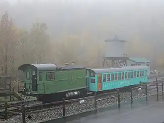 The cog railway designs and builds all of its locomotives and passenger coaches at the company shops located at the base of Mount Washington.[39]