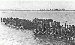 By 1973, FRELIMO were also mining civilian towns and villages in an attempt to undermine the civilian confidence in the Portuguese forces.[1] "Aldeamentos: agua para todos" (Resettlement villages: water for everyone) was a commonly seen message in the rural areas, as the Portuguese sought to relocate and resettle the indigenous population, in order to isolate the FRELIMO from its civilian base.[61] Conversely, Mondlane's policy of mercy towards civilian Portuguese settlers was abandoned in 1973 by the new commander, Machel.[62] "Panic, demoralisation, abandonment, and a sense of futility—all were reactions among whites in Mozambique" stated conflict historian T.H. Henricksen in 1983.[42] This change in tactics led to protests by Portuguese settlers against the Lisbon government,[1] a telltale sign of the conflict's unpopularity. Combined with the news of the Wiriyamu Massacre and that of renewed FRELIMO onslaughts through 1973 and early 1974, the worsening situation in Mozambique later contributed to the downfall of the Portuguese government in 1974. A Portuguese journalist argued: