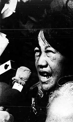 In 1969, Vân resigned the presidency of the International Women's Association of Saigon to found an organization for women peace activists.[15] After attending a seminar which presented testimony from women throughout South Vietnam about rapes and other violence perpetrated against women and children because of the war, Vân announced the formation of the Ủy Ban Phụ Nữ Đòi Quyền Sống (Vietnamese Women's Committee for the Right to Live). She urged women to work for reconciliation, peace, and the eradication of violence. Within five months, the name was changed to the Vietnamese Women's Movement for the Right to Live,[23] and became one of the founding member organizations of the Mặt Trận Nhân Dân Đấu Tranh vì Hoà Bình (Vietnamese People's Front Struggling for Peace),[24] for which Vân became a vice president.[25]