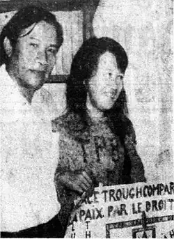 Although WILPF members had secured offers for a guest professorship at Columbia University and Bryn Mawr College following her release,[42] Vân was doubtful that she would be permitted to leave the country.[13] She decided that she needed to remain in Vietnam to work for peace. Despite the lack of recognition by the Thiệu government, the Third Force was recognized as an equal participant in the Paris Peace Accords negotiations.[36][43] Surveillance by the national police resumed and in October 1973 she was attacked by two unknown men, who she thought were policemen.[37] Vân met frequently with foreign correspondents, giving over 110 interviews over the next 15 months.[44] She resumed her international correspondence with the aim of keeping alive ties between the Women's Right to Live and WILPF. Among the numerous programs she spearheaded was a successful campaign for WILPF members to monitor political prisoners through an adopt-an-inmate program.[45] She continued to press for a political solution to end the war because, despite the US troop withdrawal, neither of the combatants was willing to lose strength and initiate demobilization. North Vietnamese troops continued to have a presence in Saigon[37] and Thiệu continued to suppress dissidents and refused to abide by the terms of the peace agreement. This ultimately led to the Fall of Saigon.[46]