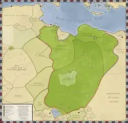 Under the leadership of Al-Mahdi, the Senussi order arrived at the height of their influence and spread, building their Zaouias where water and pasture were available, and spreading south to the Ouaddaï Region and Lake Chad.[3] The Oasis of Kufra became the center of commerce for the desert regions, with caravans coming from the Sahel and the Maghreb. The traders and their caravans took Senussi Islam to remote areas, such as the Darfur and Kanem regions, beyond Saharan North Africa.[5]