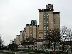 Muirhouse is a residential suburb in the south-east of Motherwell, North Lanarkshire, Scotland,[1] coming under the Motherwell South East & Ravenscraig council ward[2] and bordering the Flemington neighbourhood in the town,[3] plus the Craigneuk and Netherton areas of Wishaw. It consists of thirteen tower blocks (each over 52 metres (171 ft) high with at least 18 floors, constructed between 1963 and 1970),[4] amidst low rise flats and numerous houses.