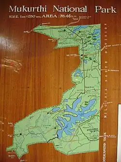 Mukurthi National Park is a 78.46 km2 (30.29 sq mi) national park in the western Nilgiris mountains of Tamil Nadu in South India. It was created to protect its keystone species, the Nilgiri tahr.[1] It is part of Nilgiri Biosphere Reserve, India's first International Biosphere Reserve. As part of the Western Ghats, it is a UNESCO World Heritage Site since 1 July 2012.[2] It is characterised by montane grasslands and shrublands interspersed with sholas, high rainfall, near-freezing temperatures and strong winds. It harbours Bengal tiger and Asian elephant.