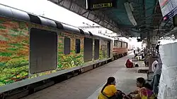 The rake has 8 AC 3 tier coaches, 2 AC 2 tier coaches, 1 AC First Class, 5 AC Chair Car, 1 Pantry car and 2 EOG cars making a total of 14 coaches.