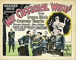 My Official Wife is a 1926 American silent romantic drama film by Austrian director Paul L. Stein, and his first American film. It stars Irene Rich[4] and Conway Tearle.[5] It is an adaptation of the 1891 novel My Official Wife by Richard Henry Savage (which had been filmed once before in 1914 by the Vitagraph Company of America with Clara Kimball Young as the lead), but the storyline was updated to include World War I.[2][6][7]