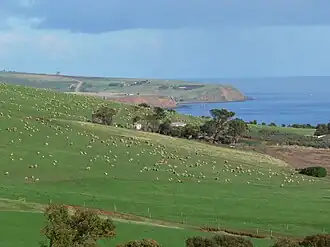 Sheep grazing on the slopes of Black Hill near Myponga Beach