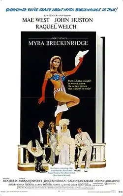 Myra Breckinridge is a 1970 American comedy film based on Gore Vidal's 1968 novel of the same name. The film was directed by Michael Sarne, and featured Raquel Welch in the title role. It also starred John Huston as Buck Loner, Mae West as Leticia Van Allen, Farrah Fawcett, Rex Reed, Roger Herren, and Roger C. Carmel. Tom Selleck made his film debut in a small role as one of Leticia's "studs."[3] Theadora Van Runkle was costume designer for the film, though Edith Head designed West's costumes.[4]
