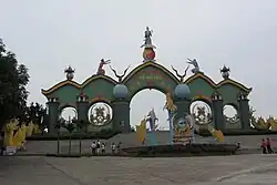 Other attractions in the park are: a 'Fairy Tale House Underworld and Water park' with a total area of about 6 hectares (15 acres); an artificial cave system, a large fish statue; in one of the large islands of 89 islets in the lake Vietnamese traditional culture is on display with 2061 cultural and historical items, which include the Bodhisattva of Compassion with thousands of hands and eyes. The flora found in the lake precincts are Rhodomyrtus tomentosa, Melastoma candidum, Cratoxylon spp. and many more. The lake precinct (reservoir area) also is home for 40 species of birds and 15 species of mammals. Duck species seen in the island within the lake during the winter are: Dendrocygna javanica, Anas crecca and A. acuta. A small breeding centre of Ardeola bacchus and Egretta spp. has also been established on an island within the lake. Since a very large number of storks and many other birds, are seen in an island in the lake, it is also known as "Stork Island", and another island in the lake where large number of goats has been named as 'Goat Island'.[1][2][3][4]