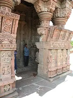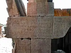 The temple is unique in north India for the many inscriptions on and in the building, with a particular concentration being found in the eastern entrance. In addition to the consecration record, located on a lintel on the left (south side) of the porch and dated Vikrama year 1137 or 1080-81 CE in the time of Udayāditya, the porch carries more than sixty votive records.[6] Not yet studied in a systematic fashion, these form a continuous sequence from the time of the Paramāras – Devapāla (circa 1218–39 CE) is mentioned – through the period of the Tughluq dynasty, the Mughals and their successors.