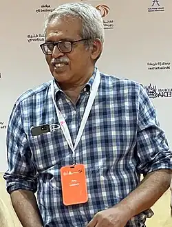 He began his career in writing with the publication of Poovum Puzhayum (1988), a collection of short stories.[10] He received an Edasseri Award for this work in the same year.[11] Since then he has published a number of works[12] and received many prestigious awards including Kendra Sahitya Akademi Award for Children's Literature[13] the Kerala Sahitya Academy Award[14] and Kerala Balasahitya Institute Award.[15] He was editor of the Dubai based TAKE:1 magazine in 2016.