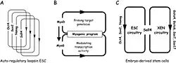 - Boyer LA, Lee TI, Cole MF, Johnstone SE, Levine SS, Zucker JP, et al. (September 2005). "Core transcriptional regulatory circuitry in human embryonic stem cells". Cell. 122 (6): 947–956. doi:10.1016/j.cell.2005.08.020. PMC 3006442. PMID 16153702.